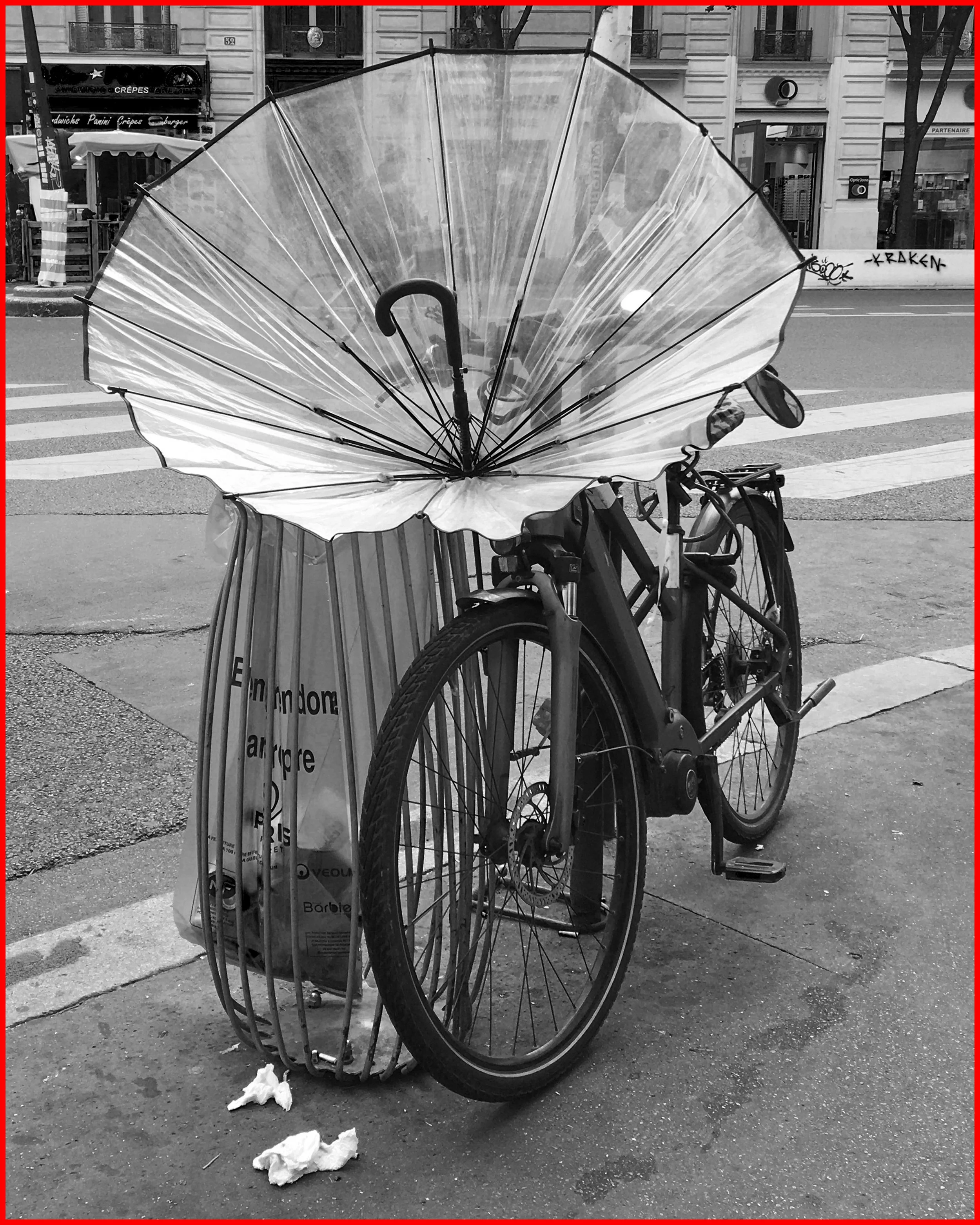 à leurs vélos sur les mobiliers urbains de Paris.
